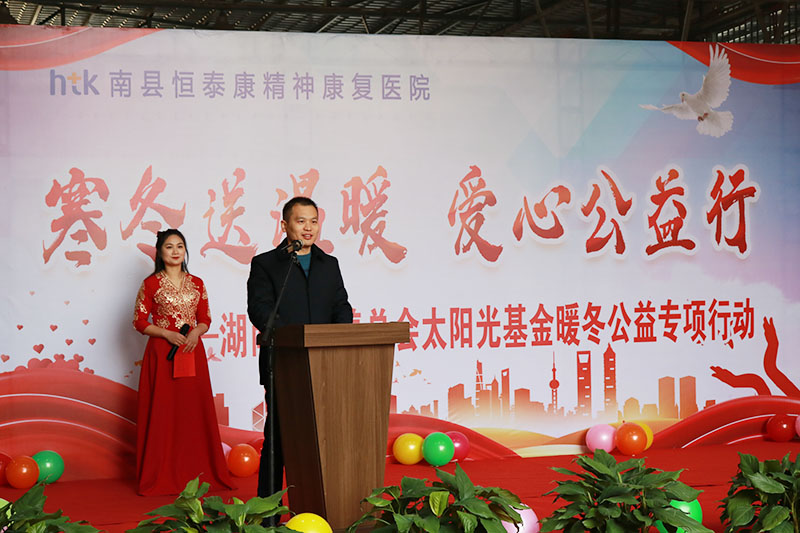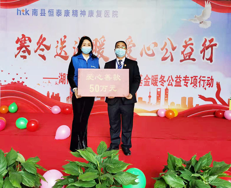 12月30日上午,湖南省民政廳慈善辦主任江曉軍等領導一行蒞臨南縣恒泰康醫院,向南縣恒泰康醫院捐贈愛心善款50萬元,用于減輕南縣200多名精神障礙患者及其家屬的醫療負擔。